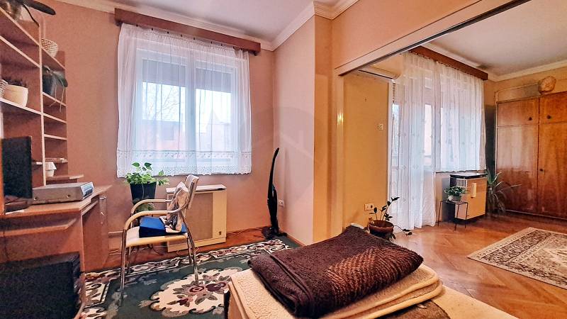 Fedezze fel ezt a kivételes lehetőséget a Széchenyivárosban, ahol egy 58 négyzetméteres téglaépítésű lakás várja új tulajdonosát. Ez a nappali + kettő szobás otthon ideális választás lehet idősek, családok, fiatal párok vagy akár befektetők számára. A lakás közepes állapotú, így lehetőséget ad arra, hogy saját ízlésére formálja, miközben az alapvető kényelmet már élvezheti. Az ingatlan különlegességei közé tartozik a 4 négyzetméteres erkély, amely tökéletes helyszín a reggeli kávé elfogyasztására vagy a pihenésre egy fárasztó nap után. A gázkonvektoros fűtés és a légkondicionáló biztosítja a kellemes hőmérsékletet egész évben.A környék adottságai igazán vonzóak, hiszen Széchenyiváros egy csendes, barátságos lakóövezet, ahol az idősek, a családok és a fiatalok egyaránt otthonra lelhetnek. A közeli parkok és zöld területek kiváló lehetőséget biztosítanak a szabadidő eltöltésére, míg a környező üzletek, éttermek és szolgáltatások mind könnyen elérhetők. A biztonságos és nyugodt környezet lehetővé teszi, hogy a mindennapokban stresszmentesen élvezhesse az otthonát.Időseknek kimondottan előnyös ez az ingatlan, hiszen földszintes, erkélyes és néhány lépés csak a kórház, az SZTK és a gyógyszertár és az unokáknak is van egy külön szobájuk. Az ingatlanhoz tartozik egy 4 m2-s saját tároló a pincében, itt tökéletesen elfér a karácsonyfadísz, a téli gumi és a böröndök is.Sőt a zárható, társasház udvarán egy autóbeálló is tartozik az ingatlanhoz.Közlekedési szempontból is ideális helyen helyezkedik el az ingatlan, hiszen az autósok számára könnyen megközelíthető, míg a tömegközlekedési lehetőségek is széleskörűek. A közeli buszmegállók és a városi közlekedési hálózat segítségével Kecskemét belvárosa és a város többi része gyorsan elérhető, így a napi ingázás sem jelenthet problémát.Birtokba-adási idő: 1 hónapKözös költség: 15.000,-Ft/hóIgény esetén az intarziás bútorok is a vételár részét képezik. FONTOS ! A hírdetési ár fix.ár, azért mert a Tulajdonos egy idős hölgy és nem szeretne alkudozásokba belemenni, csak az nézze meg az ingatlant, aki elfogadja ezt a kérést. Köszönjük a megértést. Az ingatlan 360°-s képeit megtekintheti a facebook / ÚJ OTTHON powered by Rock Home Kecskemét oldalon.Ne habozzon, ha felkeltette érdeklődését ez a remek lehetőség! Kérjük, keressen bennünket további információkért, vagy egyeztessen időpontot az ingatlan megtekintésére. Az Ön új otthona már csak egy telefonhívásnyira van Öntől !